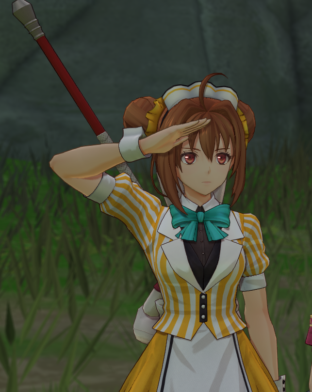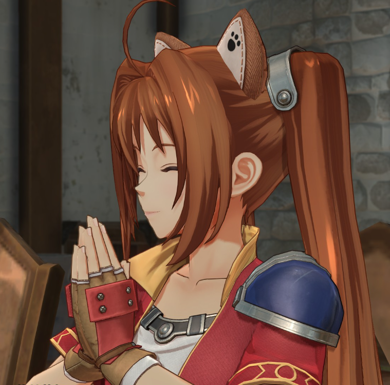 而且还可以带上猫耳,总之非常可爱,这简直就是二次元里最典型的“小太阳”型女主,简单来说就是性格大条,呆萌,但坚韧且乐观。比如SC中约修亚为了保护大家,选择一个人离开后,她虽然非常失望和深受打击,但还是决定去找男主,然后将他揍一顿然后带回来。