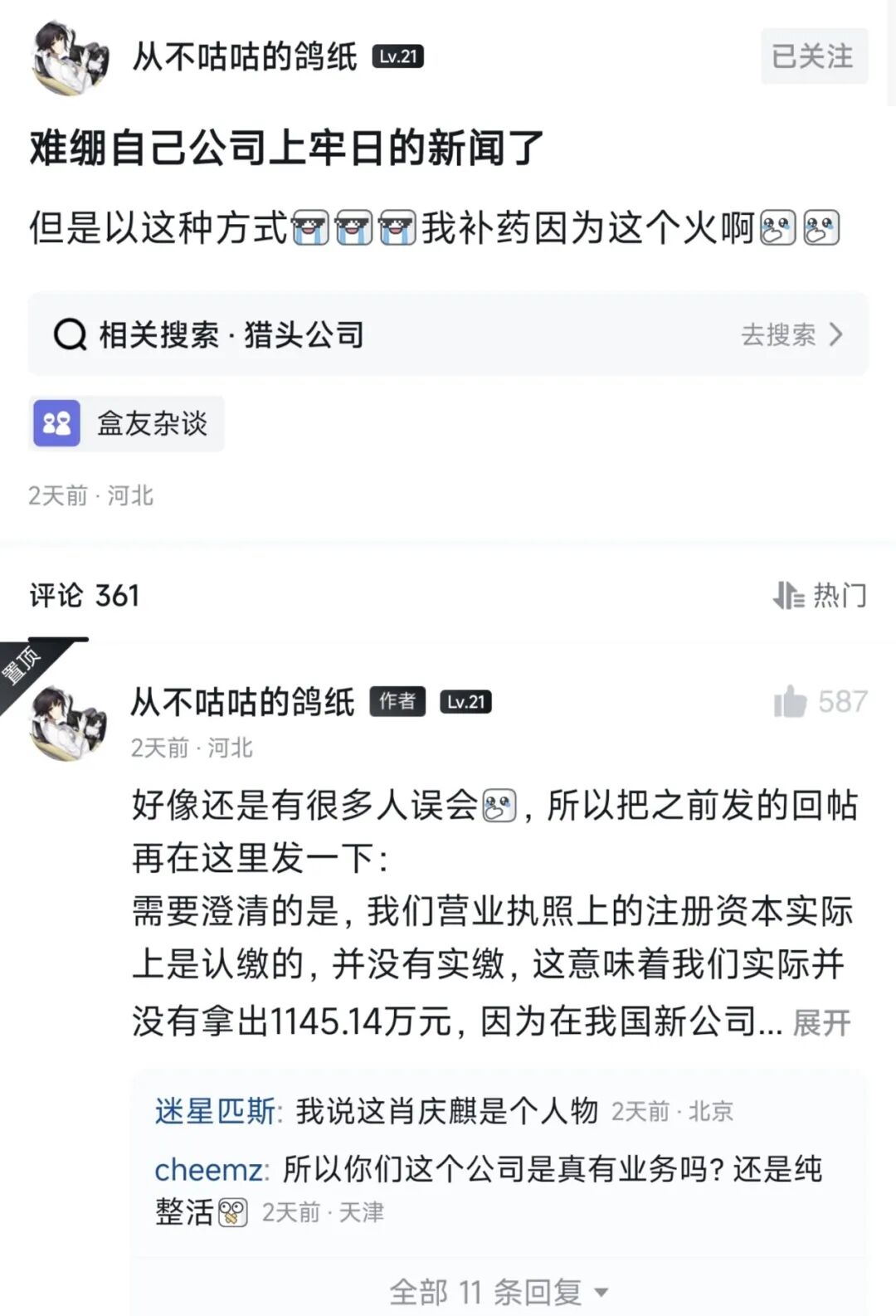 还有人说:入职后得小心公司的前辈。结果公司负责人用个人账号回复说:我就是前辈。