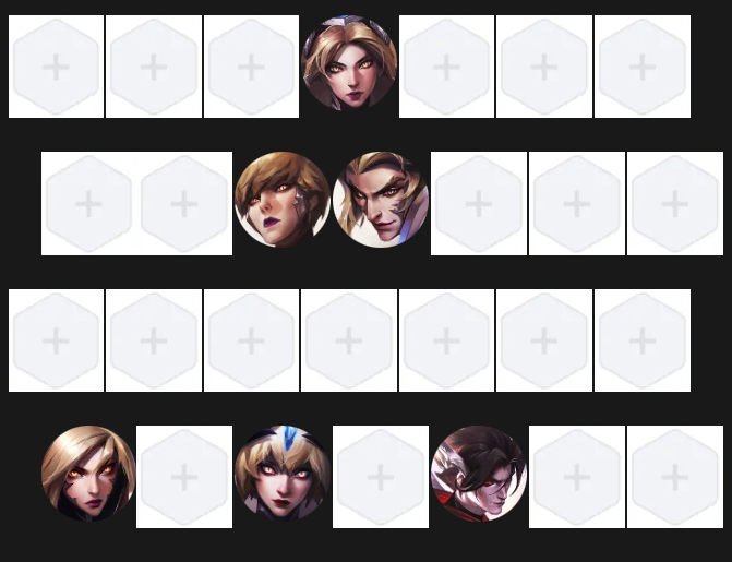 前期推荐拿拼(2)上单+(2)射手羁绊过渡,上单羁绊可以单独站位发育。后排可以用薇恩或者厄斐琉斯带装备过渡。