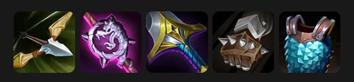主C卡莎必备无尽之刃,启动装可以用鬼索的狂暴之刃或是朔极之矛,最后一件装备补强袭者的链枷或是巨人捕手。前排艾瑞莉娅做坦克装,追三星,推荐石像鬼石板甲、狂徒铠甲和振奋盔甲。额外法系装备多的话可以给乐芙兰,大剑多给菲奥娜。