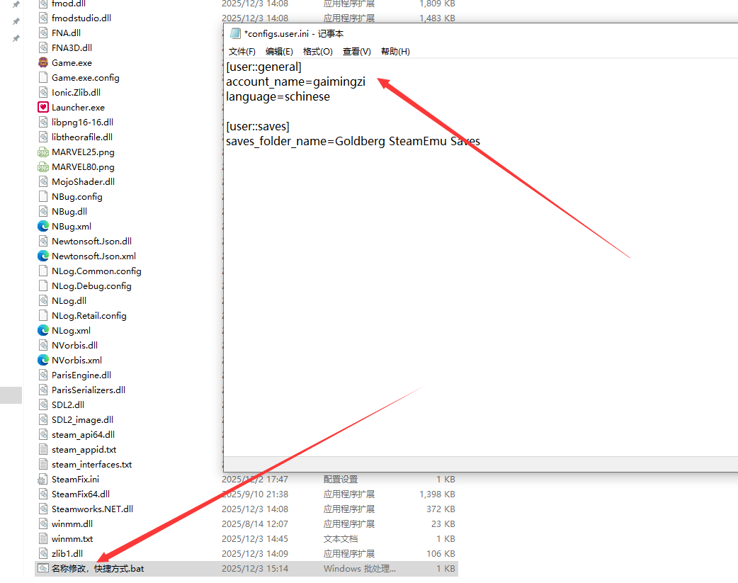 双击打开游戏目录下的“名称修改,快捷方式.bat”,找到“account_name=gaimingzi”,把“gaimingzi”改成自己想要的名字,保存。