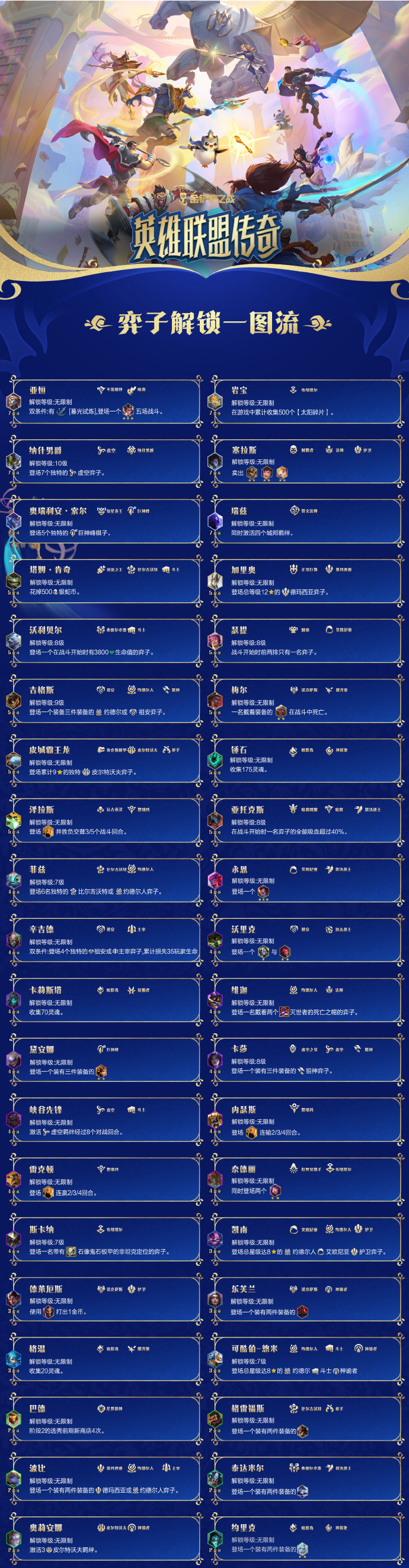 金铲铲之战英雄联盟传奇的棋子怎么解锁?金铲铲之战上线了全新赛季英雄联盟传奇,那么英雄联盟传奇棋子怎么解锁?接下来就让我们一起了解一下金铲铲之战英雄联盟传奇全棋子解锁方法吧。