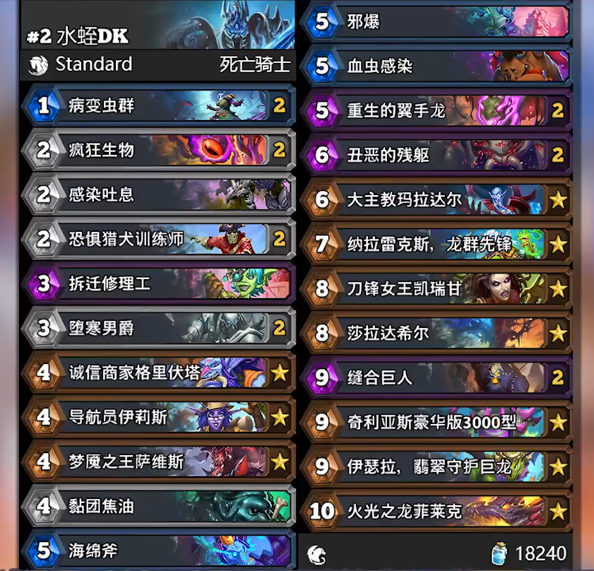 炉石传说新补丁上线之后有没有新的强力卡组呢?本周标准天梯水蛭DK胜率不错哦,那么水蛭DK卡组究竟怎么样呢?下面为大家带来的炉石传说标准水蛭DK卡组内容,感兴趣的玩家们千万不要错过哦!