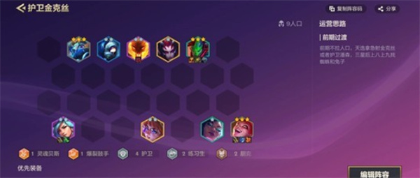 以上就是金铲铲之战护卫金克丝阵容构筑方法的全部内容了,希望玩家可以顺利的知道怎么构筑,更多精彩内容请关注多特游戏。